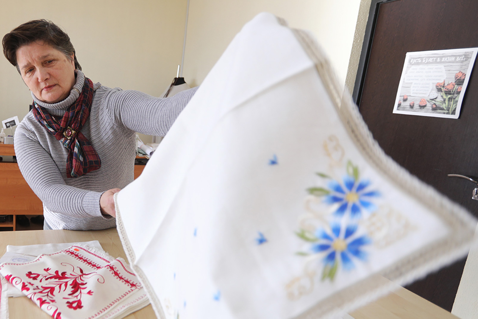 — Несколько лет назад Глава государства поручил концерну «Беллегпром» разработать белорусские пуховые платки. Разработали, запустили в производство. Но, побывав в прошлом году в Оренбурге, увидев, как трудятся местные мастера, убедились, что за производством оренбургских пуховых платков скрывается целая культура, многовековая традиция. Конкурировать с ними невозможно и не нужно. Поняли, что нам следует найти свой колорит, то, что отражало бы нашу суть. Было решено сконцентрироваться на шелковых и полиэфирных платках с мотивами белорусских традиций, объектов, пейзажей. У «Центра моды» получилась эффектная коллаборация с брестской художницей Анной Редько: так появилась линейка платков с сюжетами белорусских национальных праздников — «Гуканне вясны», «Купалле», «Дажынкі». «Камволь», который также присоединился к проекту, сотрудничал со студентами академии искусств. Уверены, платки с уникальным дизайном и местным колоритом могут стать брендом туристической Беларуси.