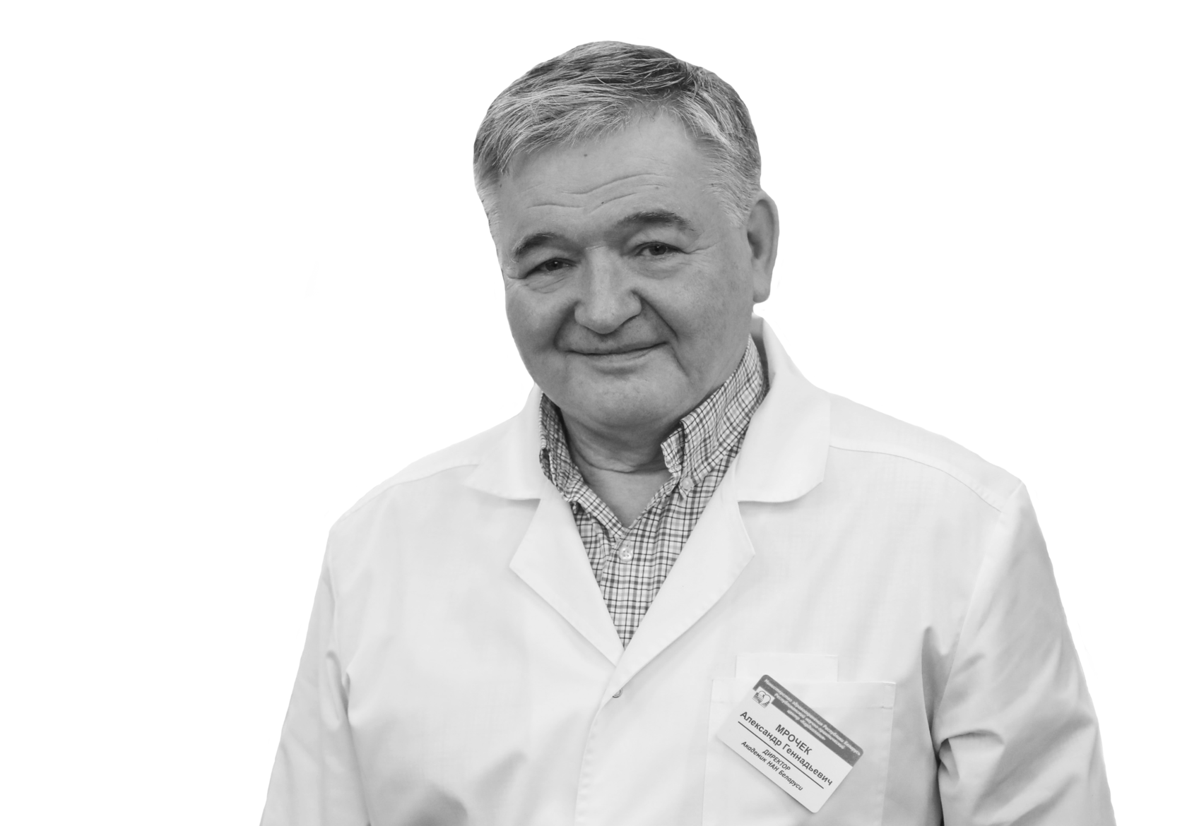В медицинской среде академик Мрочек в представлении не нуждается: когда говорят «кардиологическая служба», подразумевается именно Александр Геннадьевич. А для непосвященных – очень краткая (тем более что сам академик про себя рассказывать не любит, но очень любит похвалить коллег) справка. В 29 лет он стал кандидатом, в 35 – доктором медицинских наук, в 38 – профессором, в 51 – членом-корреспондентом НАН Беларуси, а в 56 – академиком. И всю жизнь Александр Мрочек изучает сердце. Благодаря его научным работам в том числе прояснилась патогенетическая мозаика атеросклероза и ИБС, создано медоборудование, которое разрушает тромбы в артериях, разработаны методы ранней диагностики коронарной болезни сердца у страдающих сахарным диабетом и заболеваниями щитовидной железы… Авторских свидетельств и патентов у него более 50, научных работ – свыше 550, в том числе 8 монографий. А еще он настоящий лидер, стратег и прекрасный организатор. Когда-то вся наша кардиологическая служба начинала отстраиваться на его глазах, сегодня же он с единомышленниками продолжает совершенствовать этот огромный, жизенно важный механизм.