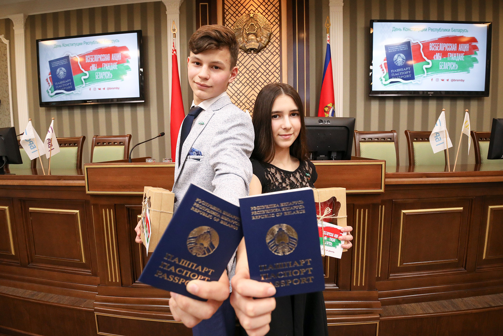 Во время акции «Мы – граждане Беларуси» 14-летним юношам и девушкам вручают их первые паспорта